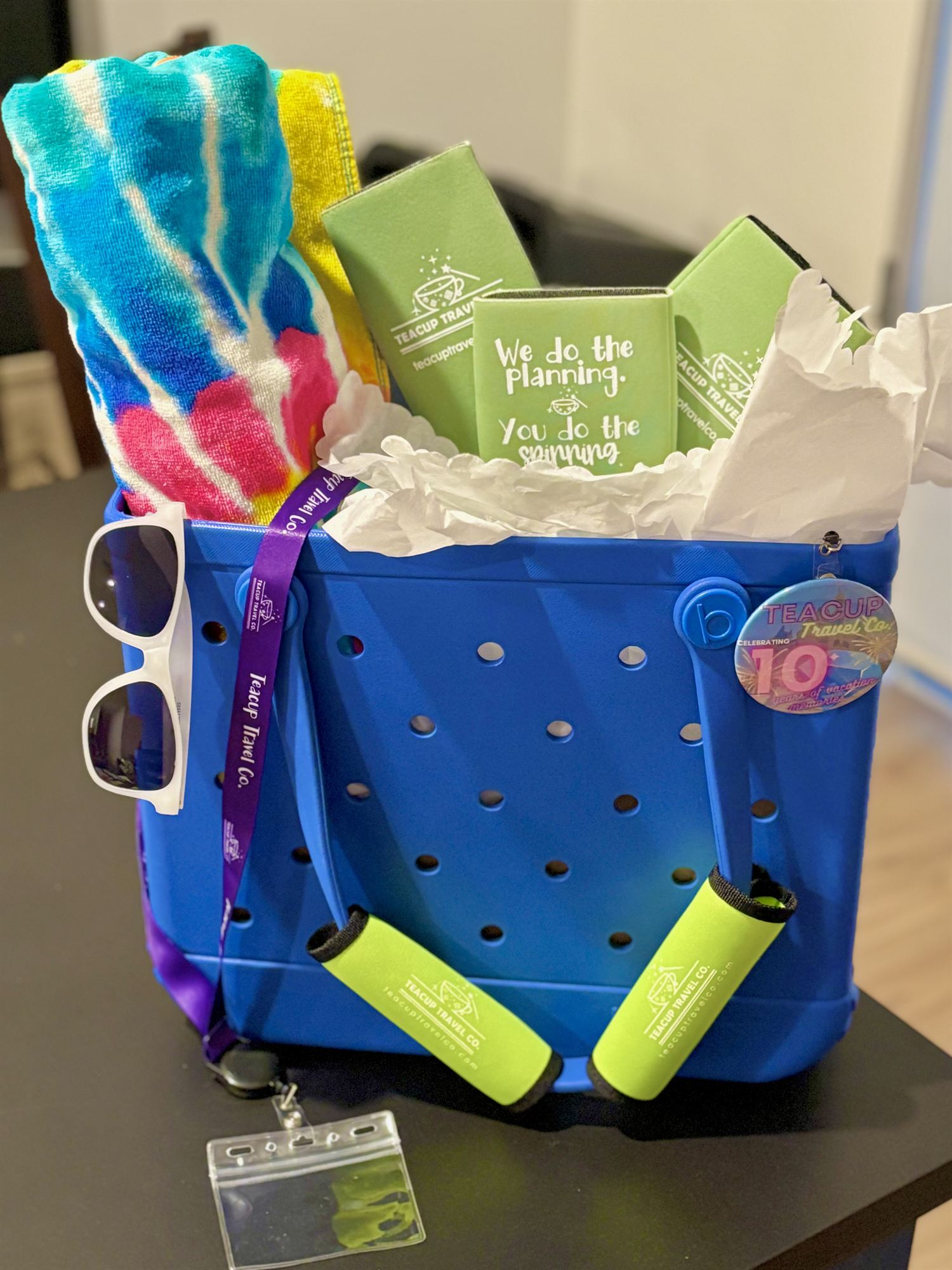 This Bundle includes: Authentic Royal Blue Medium Bogg Bag, Beach Towel, Coozies, Luggle Handle Warp, Lanyards PLUS $100 Onboard Credit when you book ANY cruis with Kristin Yamasta, Travel Consultant with Tea Cup Travel Co., LLC! Set Sail in Style - bid now and let the vacation planning begin!