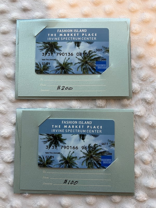 (1) $200 gift card and (1) $100 gift card from Fashion Island
