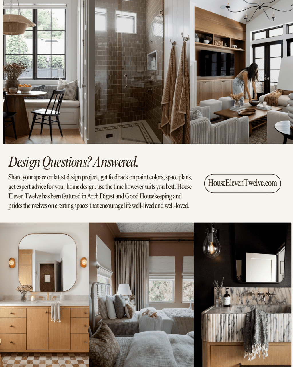 A 1-Hour Virtual Design Consult with Design Professionals from House Eleven Twelve. Share your Space or Latest Design Project, Get Feedback on Paint Colors, Space Plans, Expert Advice for Your Home Design. House Eleven Twelve Has Been Featured in Arch Digest and Good Housekeeping.