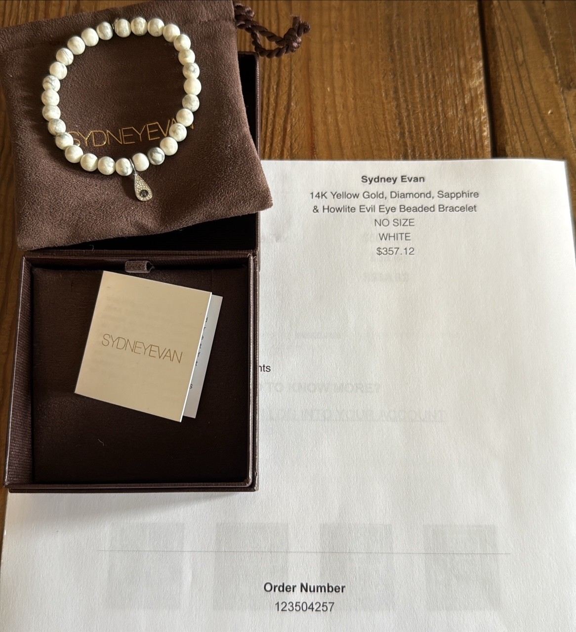 Sydney Evan 14K Yellow Gold Diamond, Sapphire & Howlite Evil Eye Beaded Bracelet - White. (6.25" Inner Circumfrence)